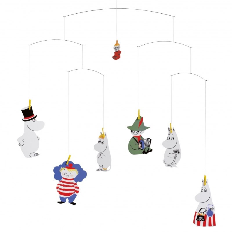 Denne fascinerende Flensted Mobile er en fryd for enhver Mumi fan. Den fine, gule æske indeholder et kort over Mumi dalen og 12 Mumi figurer som man kan skifte til at hænge på de små klemmer. Æsken indeholder også en lille hæfte om figurerne og historien (Læs mere)
