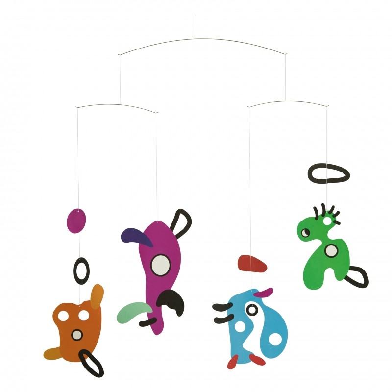 Asger Jorn-mobilen er designet i samarbejde med Museum Jorn. De fire figurer er udvalgt blandt de mange fantasifulde væsner, Asger Jorn tegnede med sort tusch i sine skitsebøger. Skitserne er siden bearbejdet med computer og farvelagt ud fra Asger Jor (Læs mere)